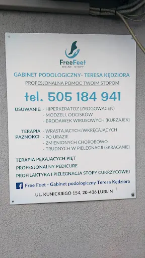 ### Free FEET – profesjonalna pielęgnacja stóp w Lublinie W lubelskiej dzielnicy, przy ulicy Władysława Kunickiego 154 (kod pocztowy 20-466), działa gabinet Free FEET, specjalizujący się w pielęgnacji stóp. Firma cieszy się wysoką opinią klientów, co potwierdzają oceny na Google – średnio 4.9 na 5 gwiazdek na podstawie 11 recenzji. To miejsce, gdzie pod okiem doświadczonej specjalistki, Teresy, klienci otrzymują fachową opiekę nad stopami, dostosowaną do indywidualnych potrzeb. Klienci w swoich opiniach podkreślają profesjonalizm i wiedzę właścicielki. Jak pisze jedna z访客: „Teresa to osoba z pasją i dużą wiedzą, swoje prace wykonuje mega profesjonalnie”. Inni doceniają miłą obsługę i rozsądne ceny: „Bardzo profesjonalna i miła obsługa. Pani Teresa ma ogromną wiedzę, którą chętnie się dzieli”. Wielu poleca gabinet za skuteczne zabiegi – „Nareszcie moje stopy zyskały odpowiednią opiekę” czy „Najlepszy podolog w Lublinie”. Opinie jednogłośnie chwalą podejście do klienta i jakość usług. Free FEET to solidny wybór dla mieszkańców Lublina szukających niezawodnej pielęgnacji stóp. Wysoka ocena i pozytywne recenzje świadczą o zaufaniu, jakim darzą to miejsce lubelanie. Warto odwiedzić gabinet i przekonać się osobiście. (Słowa: 198)